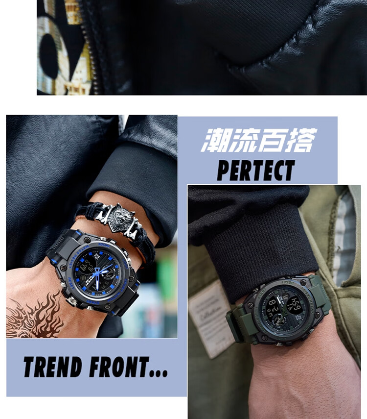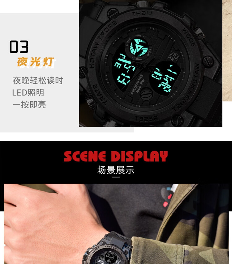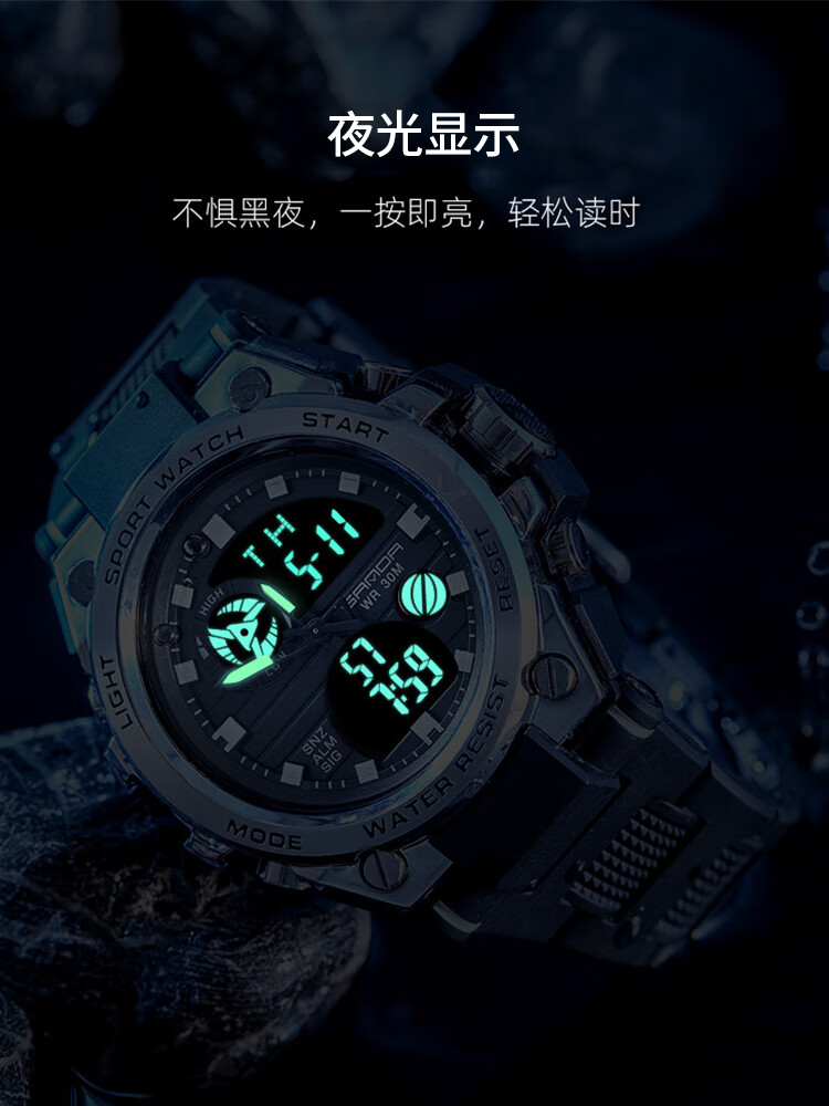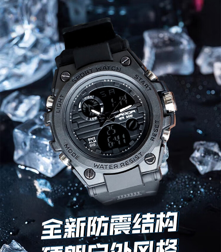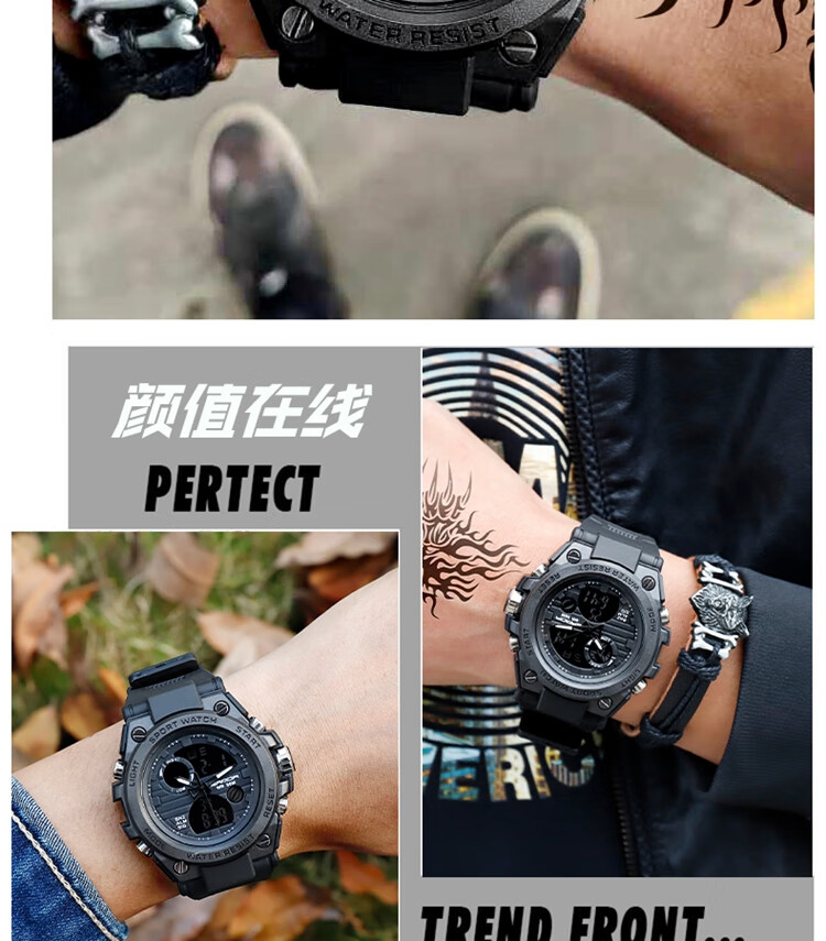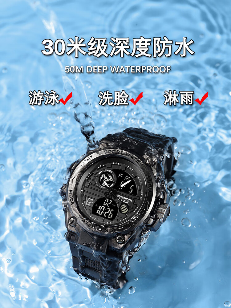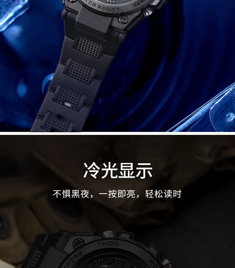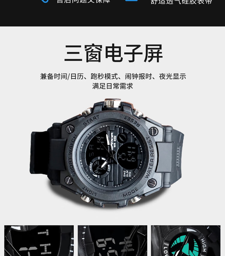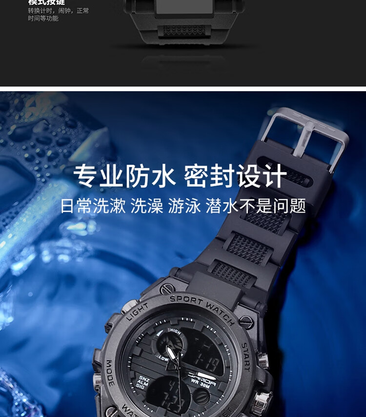 手表男学生运动防水多功能初高中青少年电子表校园夜光男士腕表 黑蓝