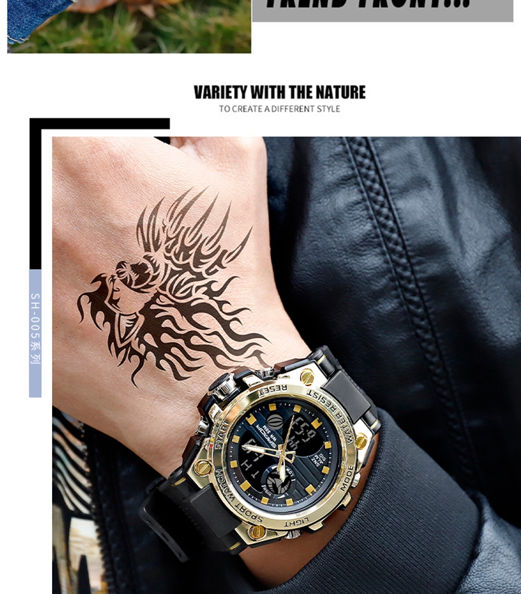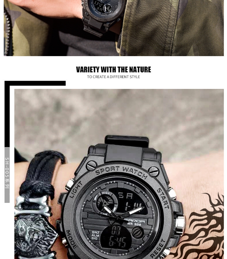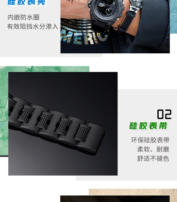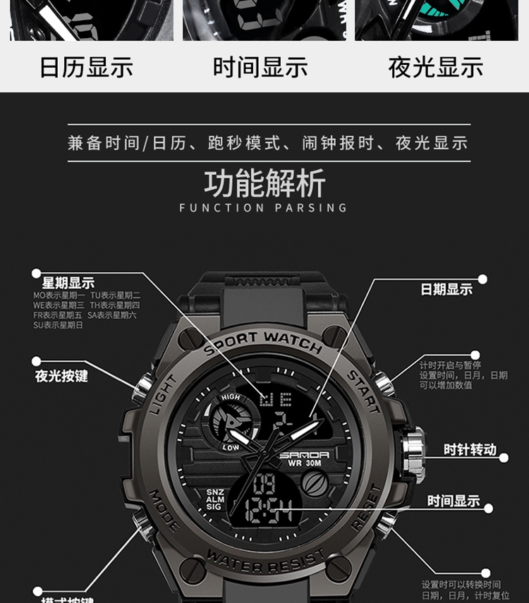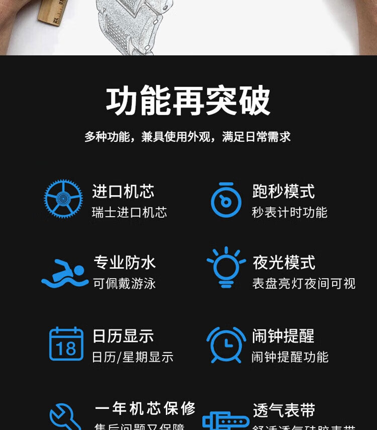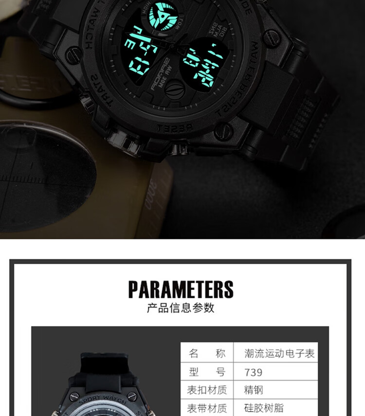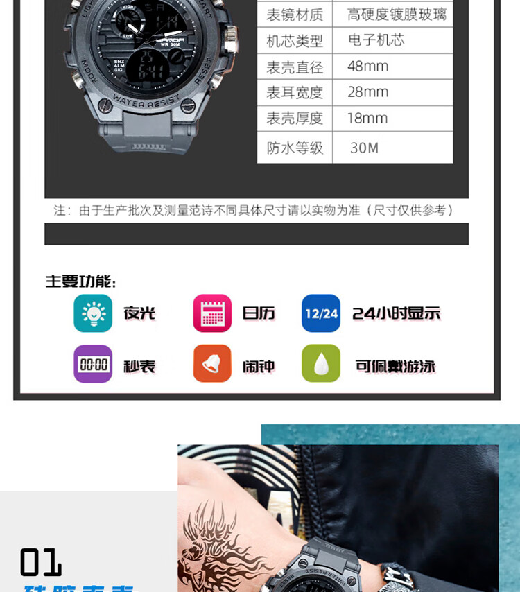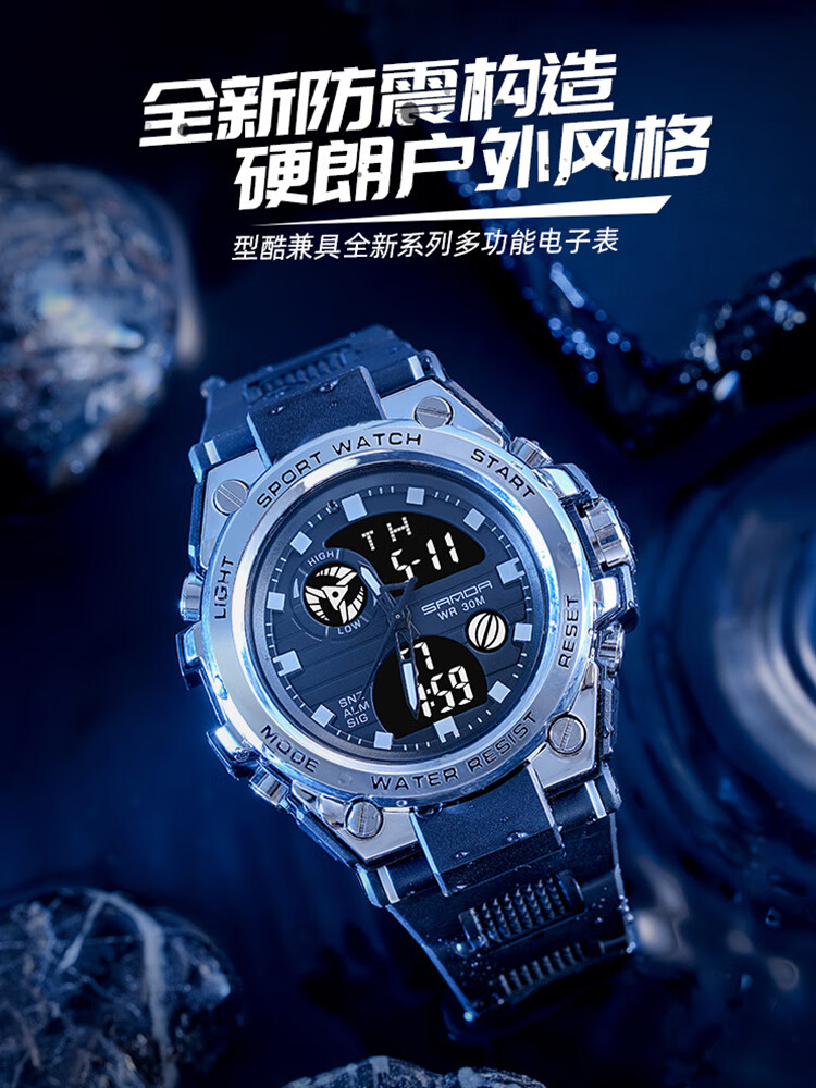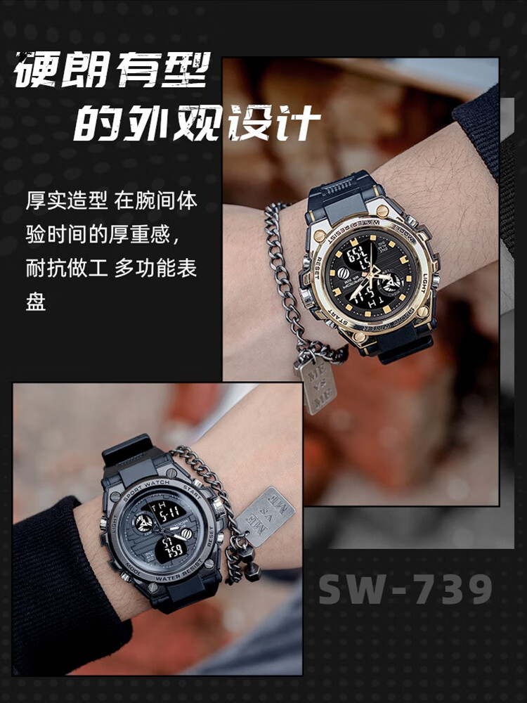 手表男学生运动防水多功能初高中青少年电子表校园夜光男士腕表 黑蓝