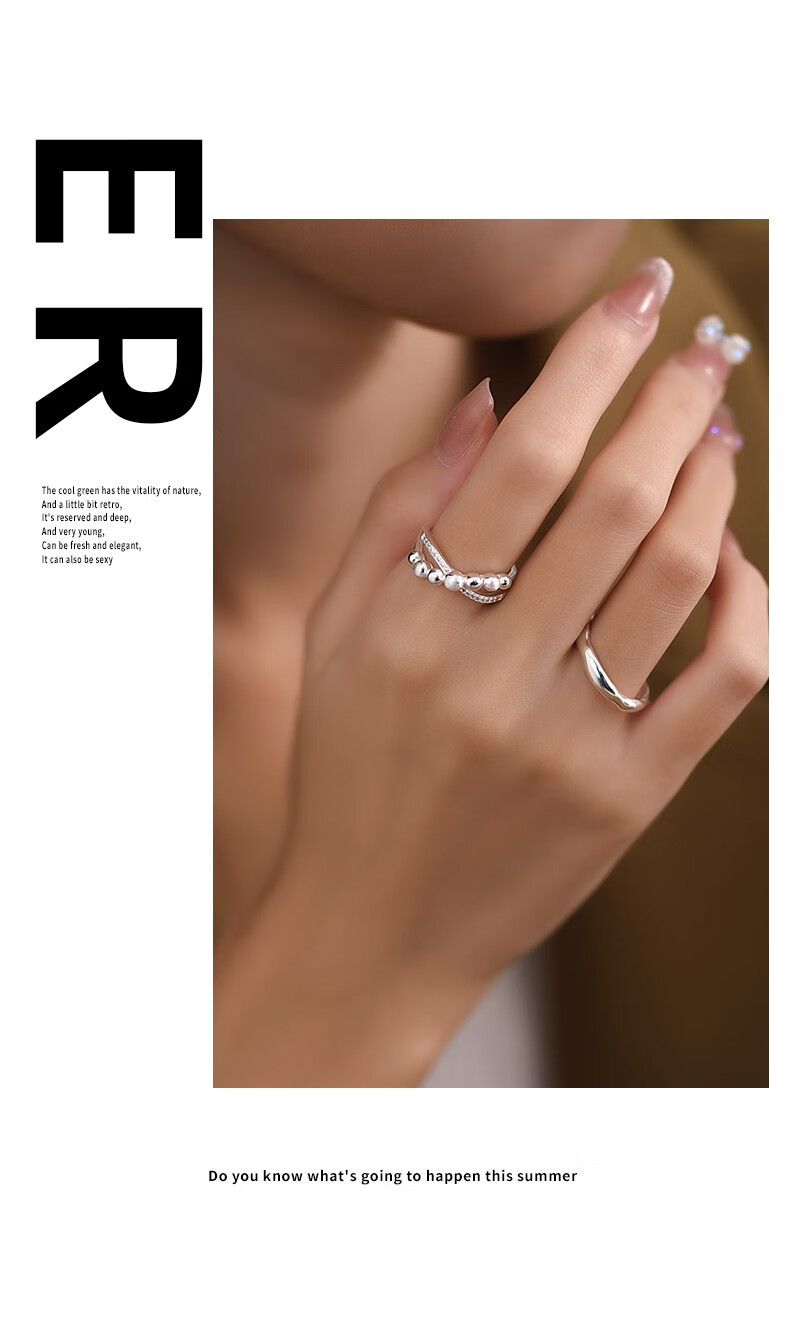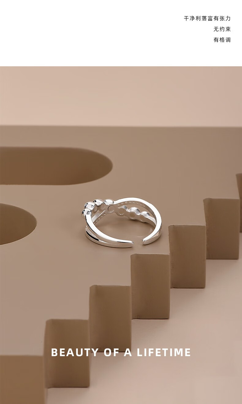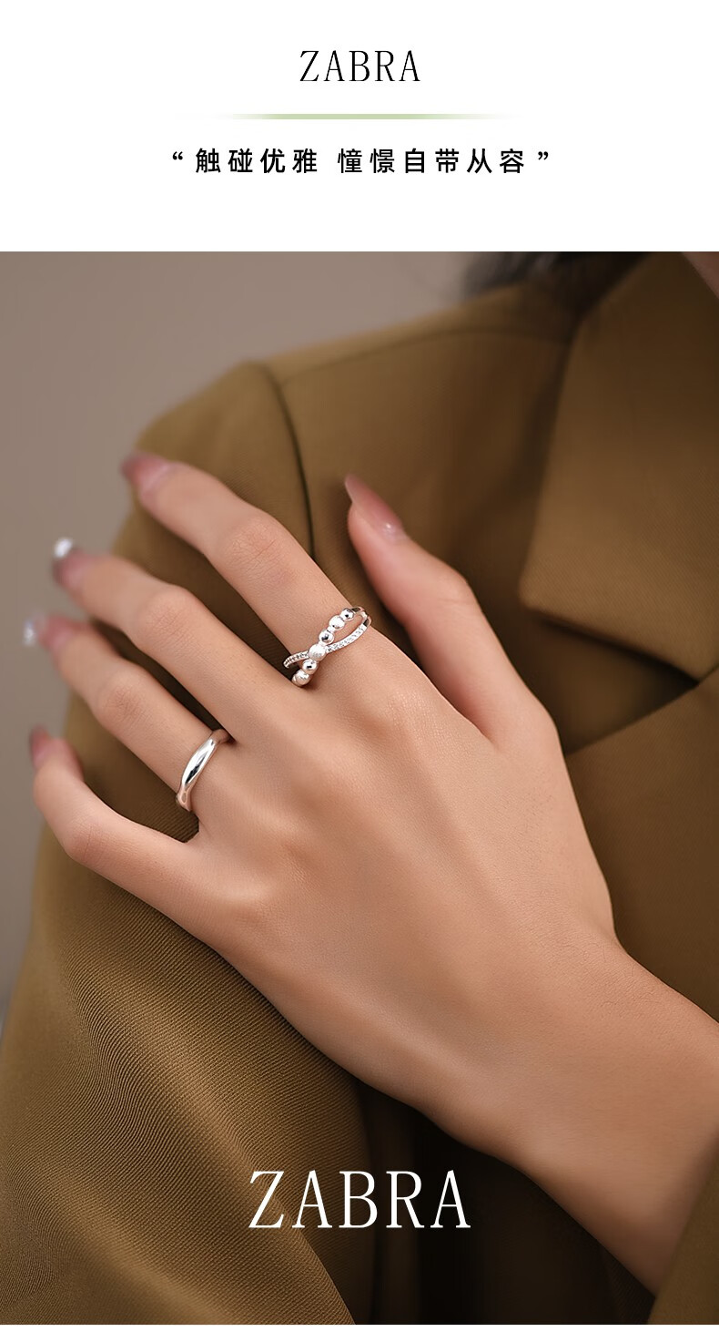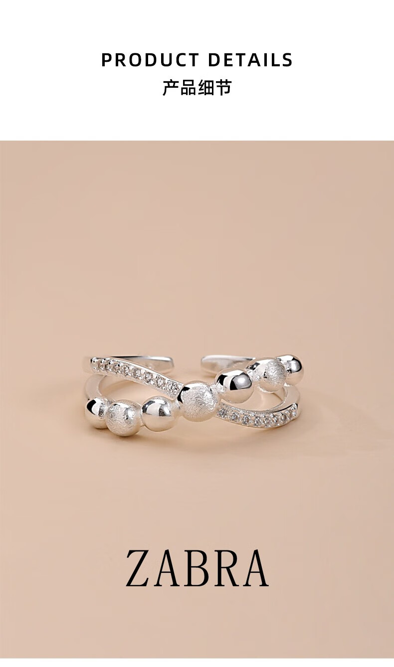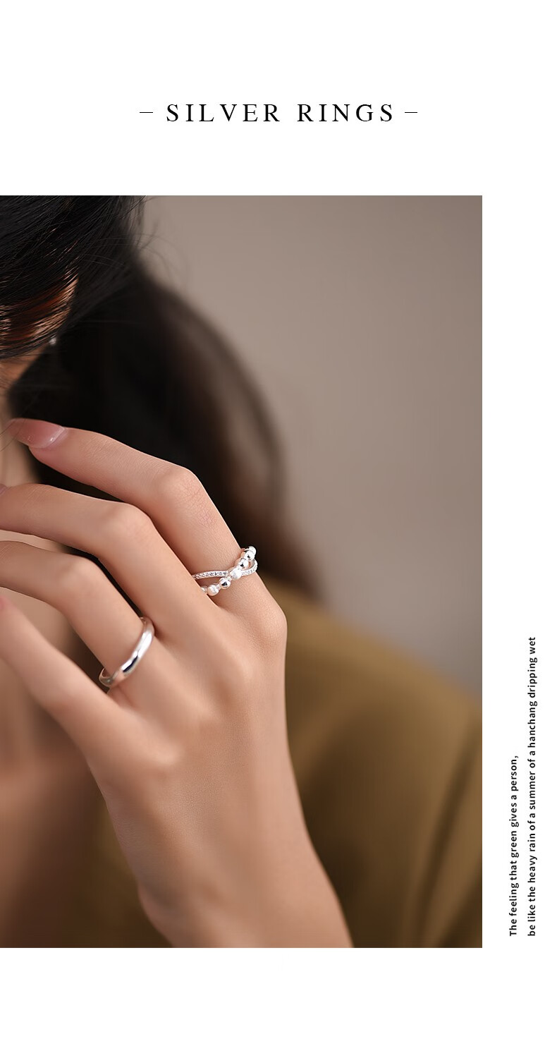 轻奢饰品925银交叉戒指女简约指环小众冷淡风潮款开口食指戒 交叉戒指